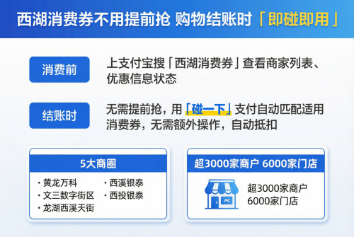 告别抢券!即日起,在杭州西湖区到店用“碰一下”消费券“即碰即用”